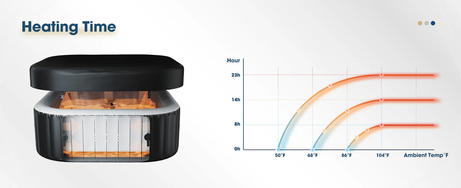 The water quickly warms up to a soothing 104°F (40°C) thanks to the efficient rapid-heating system. Control the temperature, bubbles, and filtration effortlessly with the simple digital control panel. Includes two covered filter cartridges to help keep your water crystal clear.