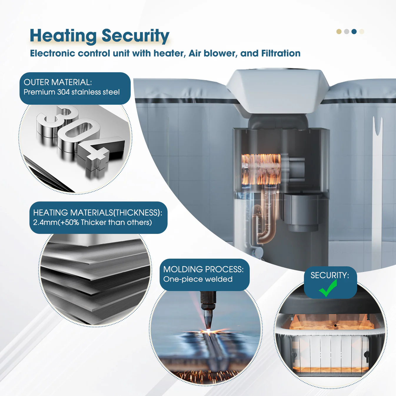 Crafted from durable laminated PVC with vertical I-beam reinforcement, this hot tub maintains its shape and resists scrapes or punctures. Its sturdy design ensures long-term reliability, comfort, and support during every soak.
