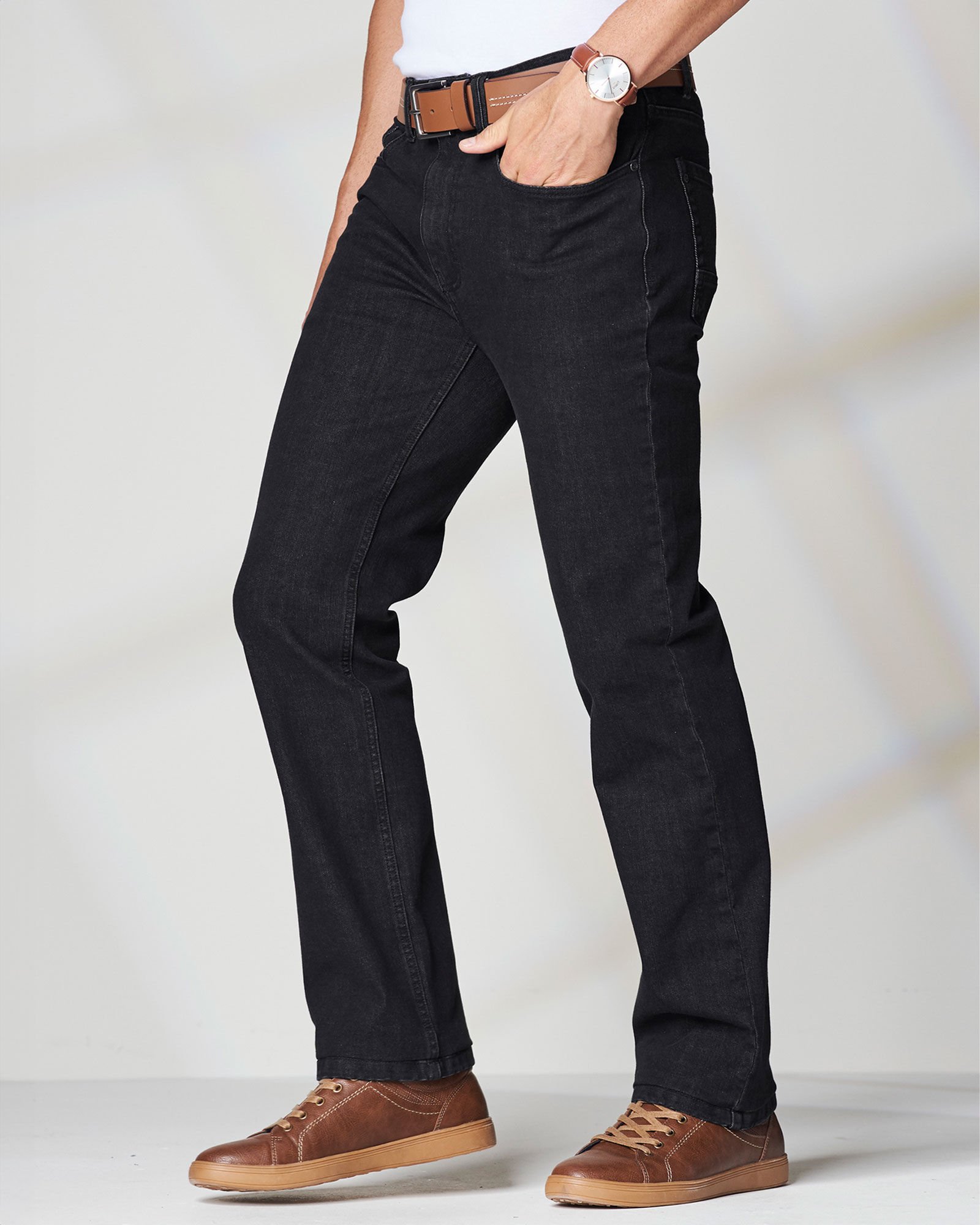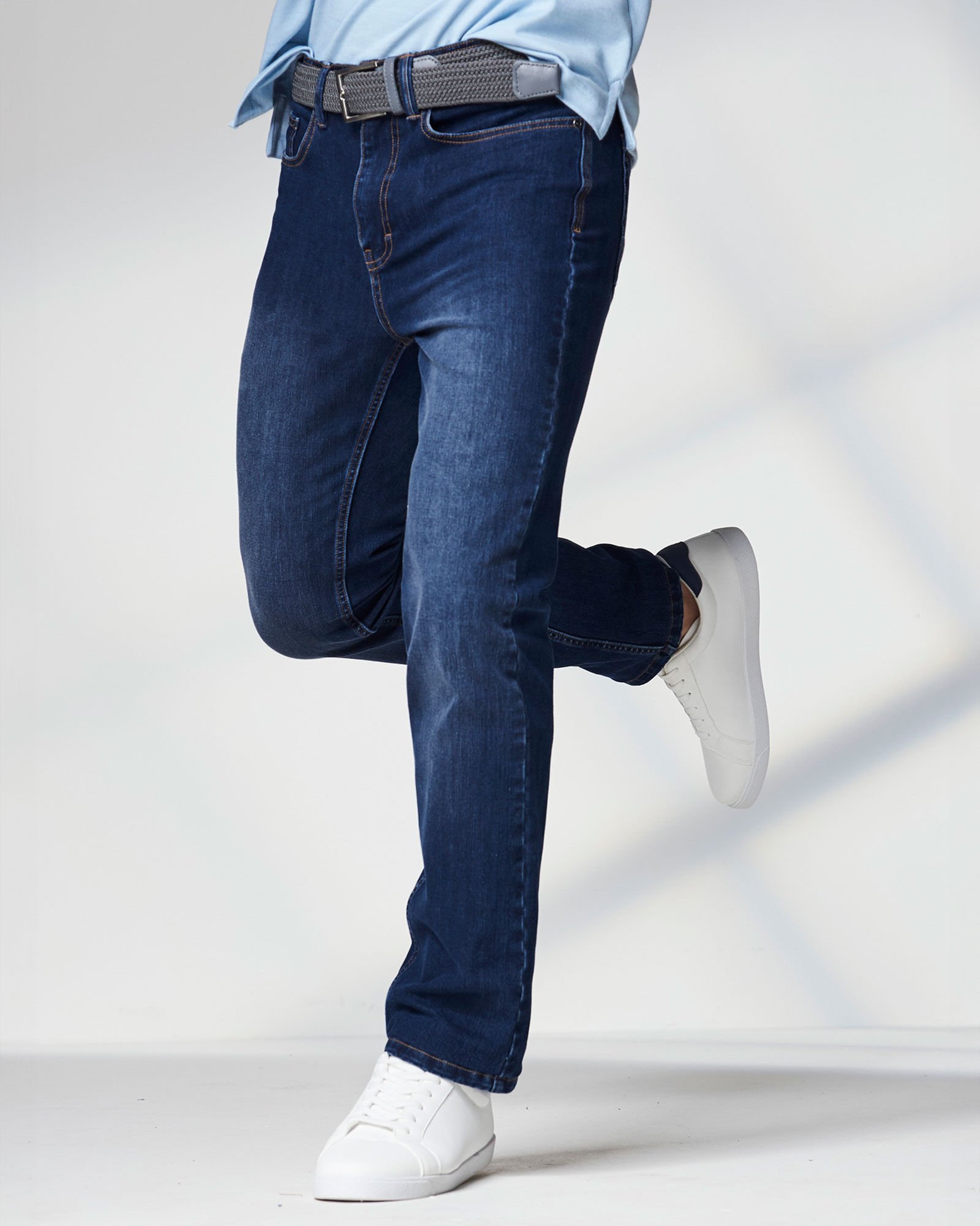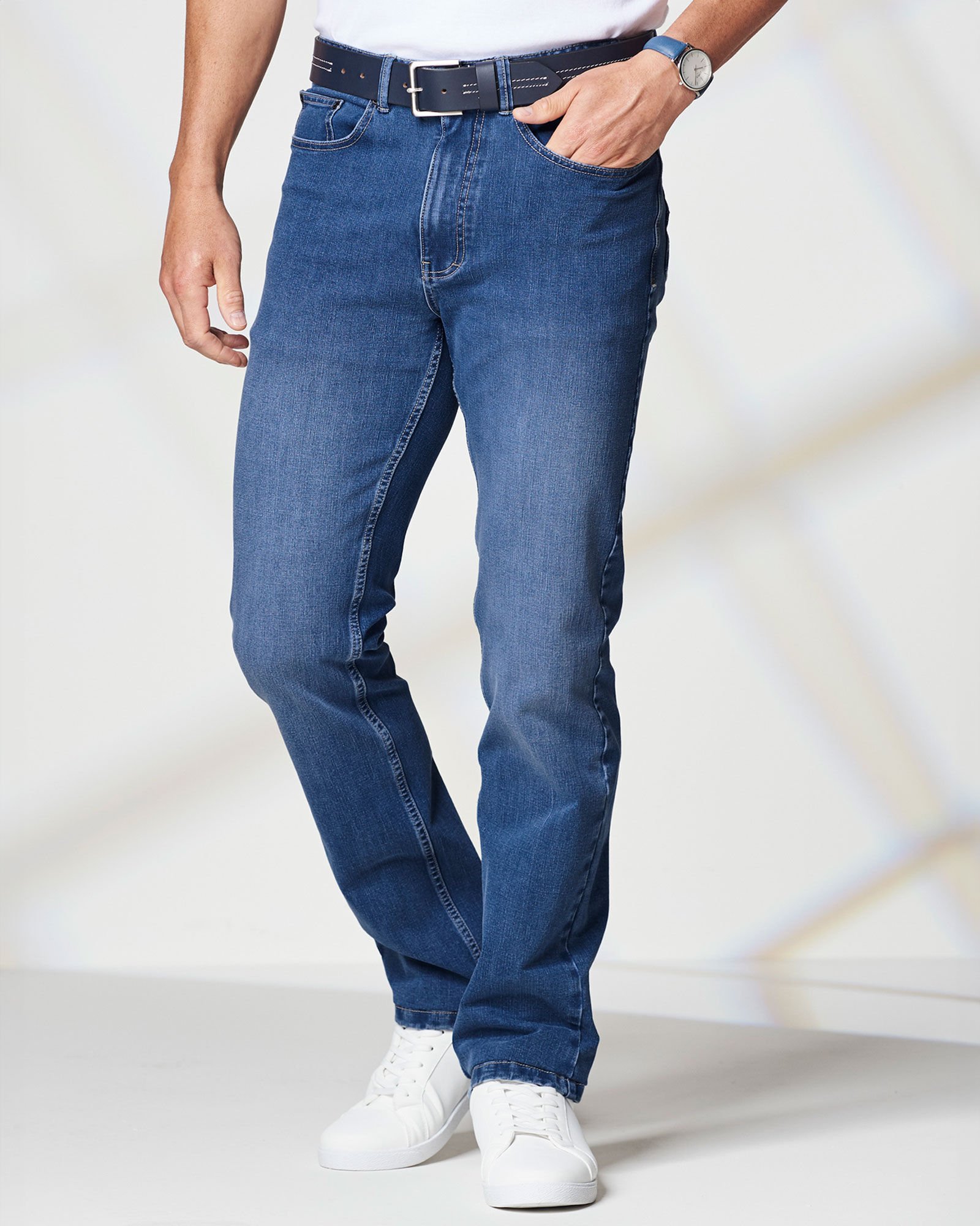 When we say ultimate, we mean it. These stretch jeans are an effortlessly stylish wardrobe staple, made from a four-way stretch cotton-rich denim for easy comfort and a smart straight fit that won’t lose shape. Sandblasting to the front of some washes and metal stud detailing gives them a relaxed, worn-in look that we’ve finished with classic five-pocket western styling and a zip fly with stud button fastening.