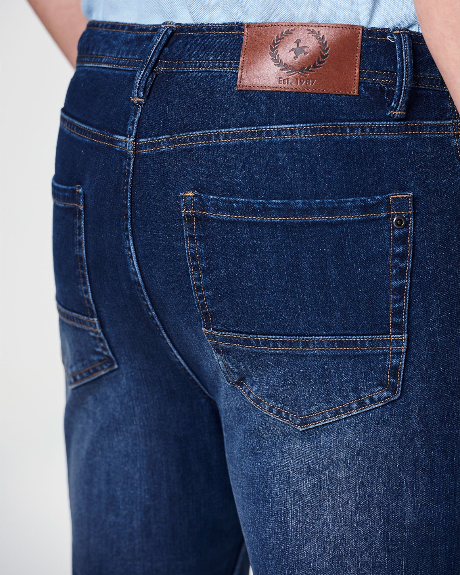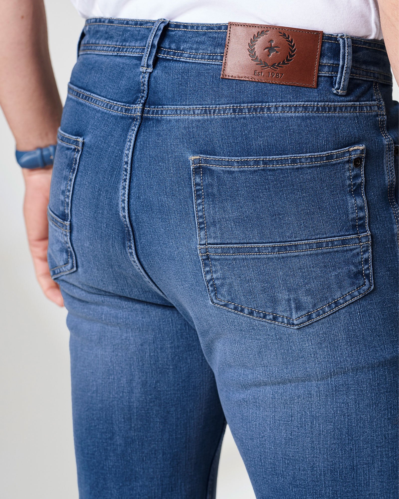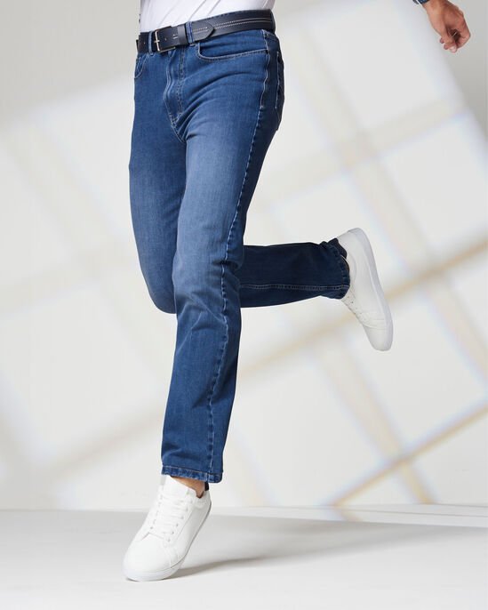 When we say ultimate, we mean it. These stretch jeans are an effortlessly stylish wardrobe staple, made from a four-way stretch cotton-rich denim for easy comfort and a smart straight fit that won’t lose shape. Sandblasting to the front of some washes and metal stud detailing gives them a relaxed, worn-in look that we’ve finished with classic five-pocket western styling and a zip fly with stud button fastening.